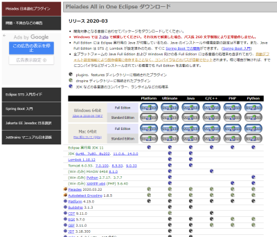『 Pleiades All in One 』という開発環境の設定