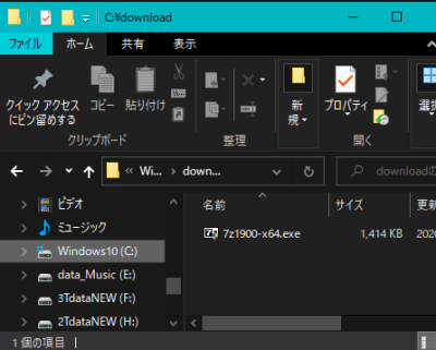 私の場合は、『 7z1900-x64.exe 』が、ダウンロードされていました。