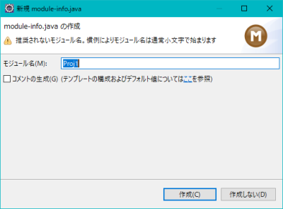 モジュール名を聞かれますが、『作成しない』を選択